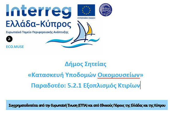 Διακήρυξη ηλεκτρονικού ανοιχτού διαγωνισμού για την ανάθεση της προμήθειας με τίτλο: «Παραδοτέο: 5.2.1 Εξοπλισμός Κτιρίων» του έργου: «Κατασκευή Υποδομών Οικομουσείων»