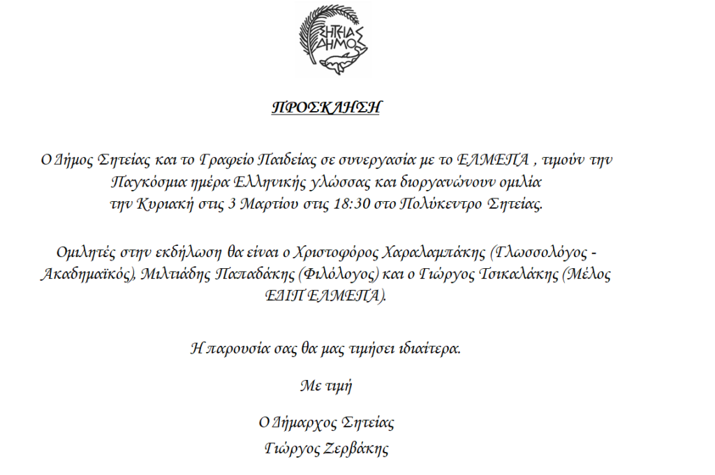 Εκδήλωση για την Παγκόσμια Ημέρα Ελληνικής Γλώσσας.