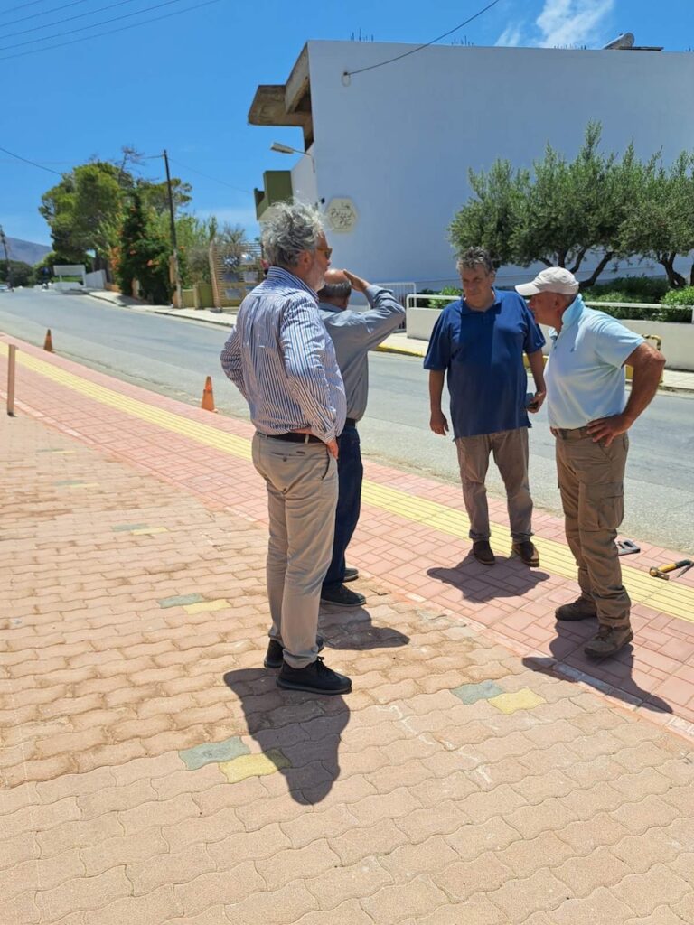 Ο Δήμαρχος Σητείας, συνοδευόμενος από τον Αντιδήμαρχο Τεχνικών Υπηρεσιών κ. Γιάννη Παπαδάκη, επισκέφθηκε τον οικισμό Ανάληψης Πεύκων, όπου ολοκληρώνεται η κατασκευή της Β’ Φάσης του πεζοδρομίου στα εμπορικά καταστήματα.