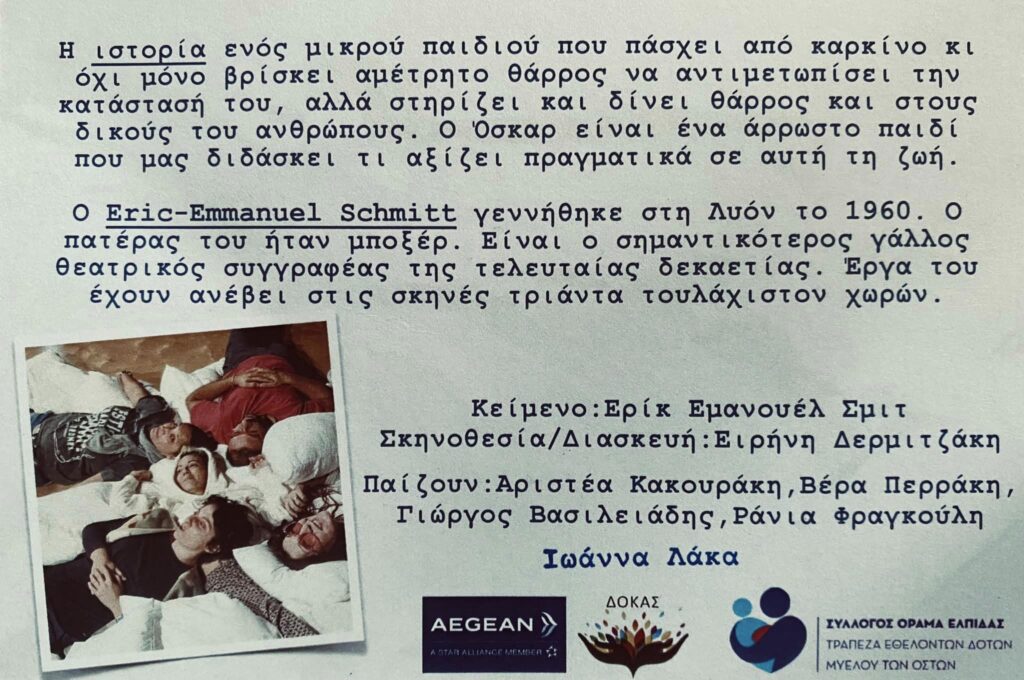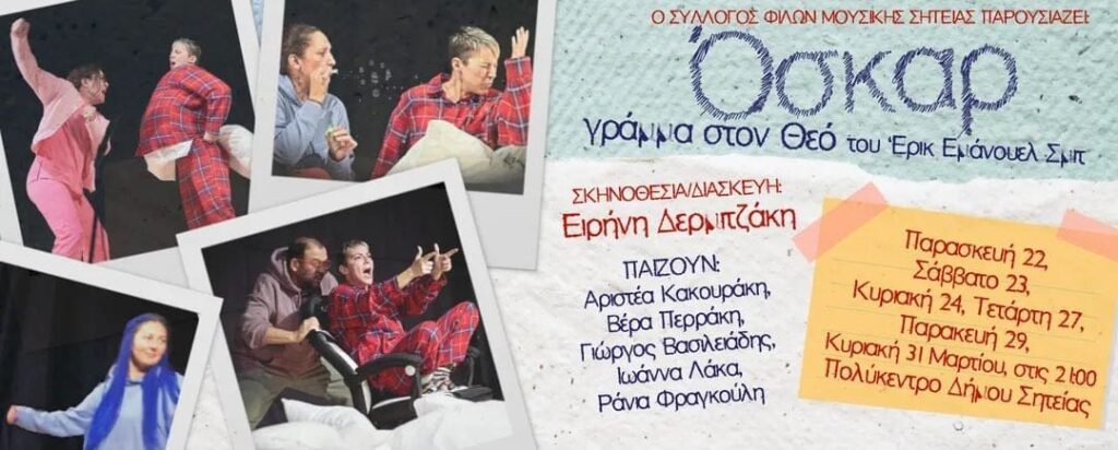 Ο Σύλλογος Φίλων Μουσικής Σητείας παρουσιάζει τη θεατρική παράσταση “Όσκαρ – γράμμα στον Θεό”.