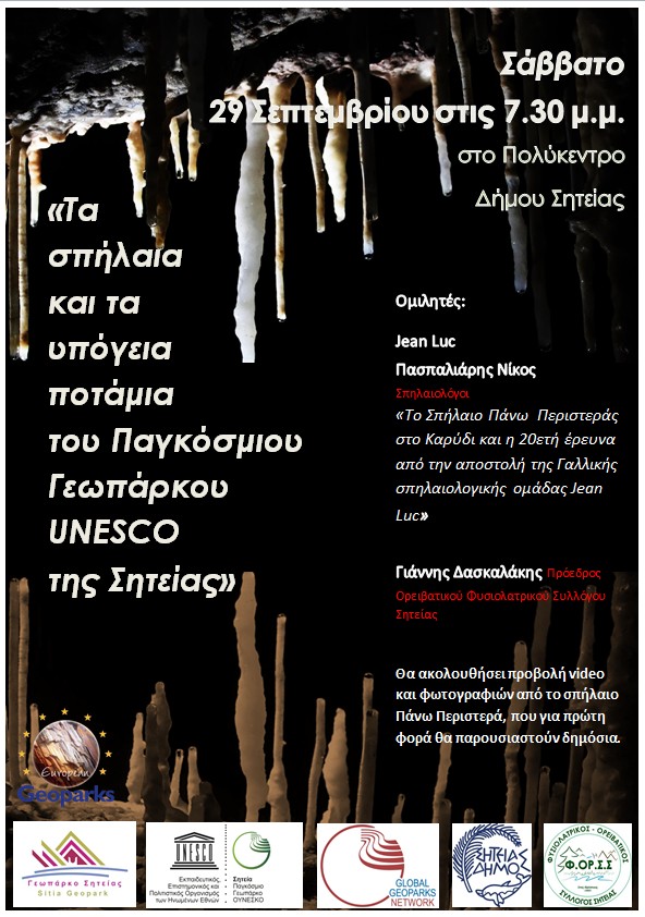 .Πρόσκληση σε ημερίδα «Τα σπήλαια και τα υπόγεια ποτάμια του Παγκόσμιου Γεωπάρκου UNESCO της Σητείας»