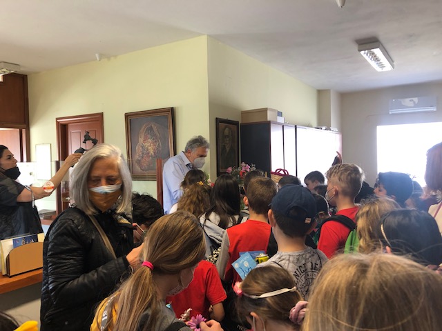 Ο κ. Ζερβάκης ευχαρίστησε θερμά τα παιδιά για την όμορφη πράξη τους, συνομίλησε μαζί τους και τους ευχήθηκε Καλό Πάσχα και Χρόνια Πολλά!!