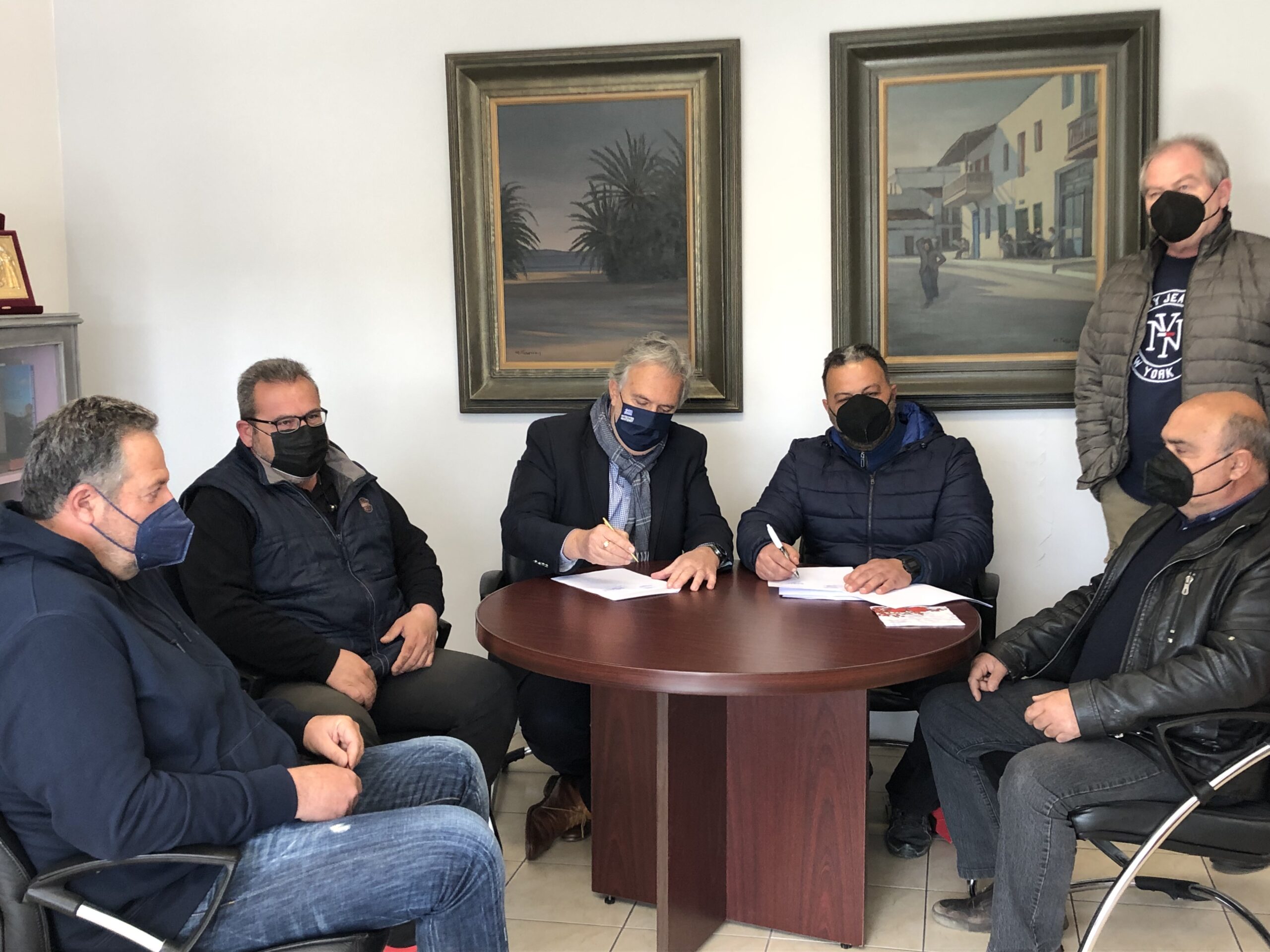 Τη σύμβαση για την εκτέλεση του έργου « Βελτίωση δρόμου από Κουρεμένο προς Χιόνα » υπέγραψε σήμερα ο Δήμαρχος Σητείας κ. Γιώργος Ζερβάκης με την ανάδοχο εταιρεία Μ-Π ΚΑΤΑΣΚΕΥΑΣΤΙΚΗ Ο.Ε. παρουσία του Προέδρου της Κοινότητας Παλαικάστρου κ. Χατζηδάκη, του Αντιδημάρχου κ. Παπαδάκη και του Δ/ντή Τεχνικών Υπηρεσιών κ. Τσουκνάκη.