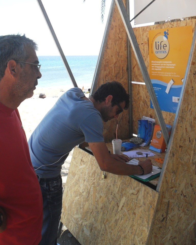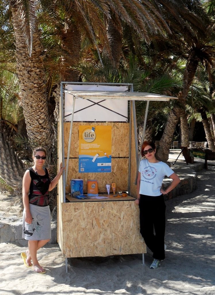 16-6-2014.Έγιναν τα εγκαίνια ενημερωτικού περιπτέρου στο Φοινικόδασος ΒΑΙ για την ενημέρωση των επισκεπτών για το Ευρωπαϊκό έργο << LIFE ΑΜΜΟS για την πρόληψη και τον περιορισμό των απορριμμάτων καπνιστών στις παραλίες>>.