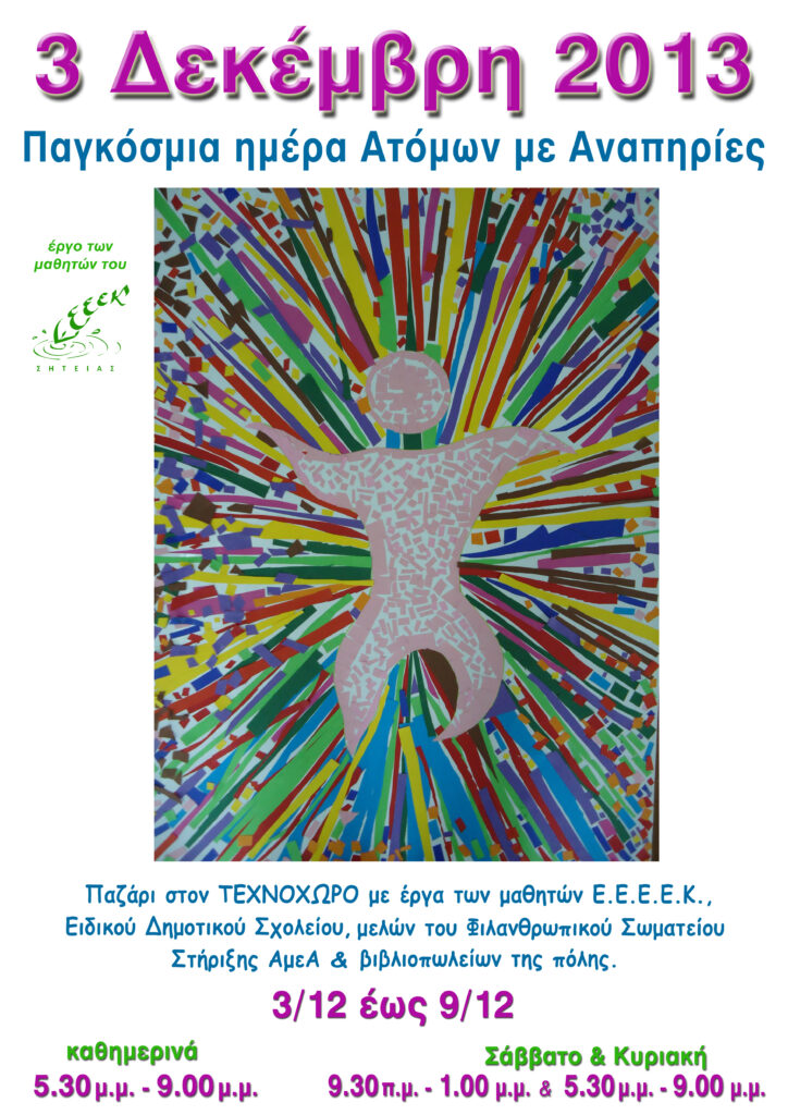 2.12.2013. 3 ΔΕΚΕΜΒΡΗ: ΠΑΓΚΟΣΜΙΑ ΗΜΕΡΑ ΑμεΑ – ΠΑΖΑΡΙ ΕΙΔΙΚΩΝ ΣΧΟΛΕΙΩΝ ΣΤΗ ΣΗΤΕΙΑ