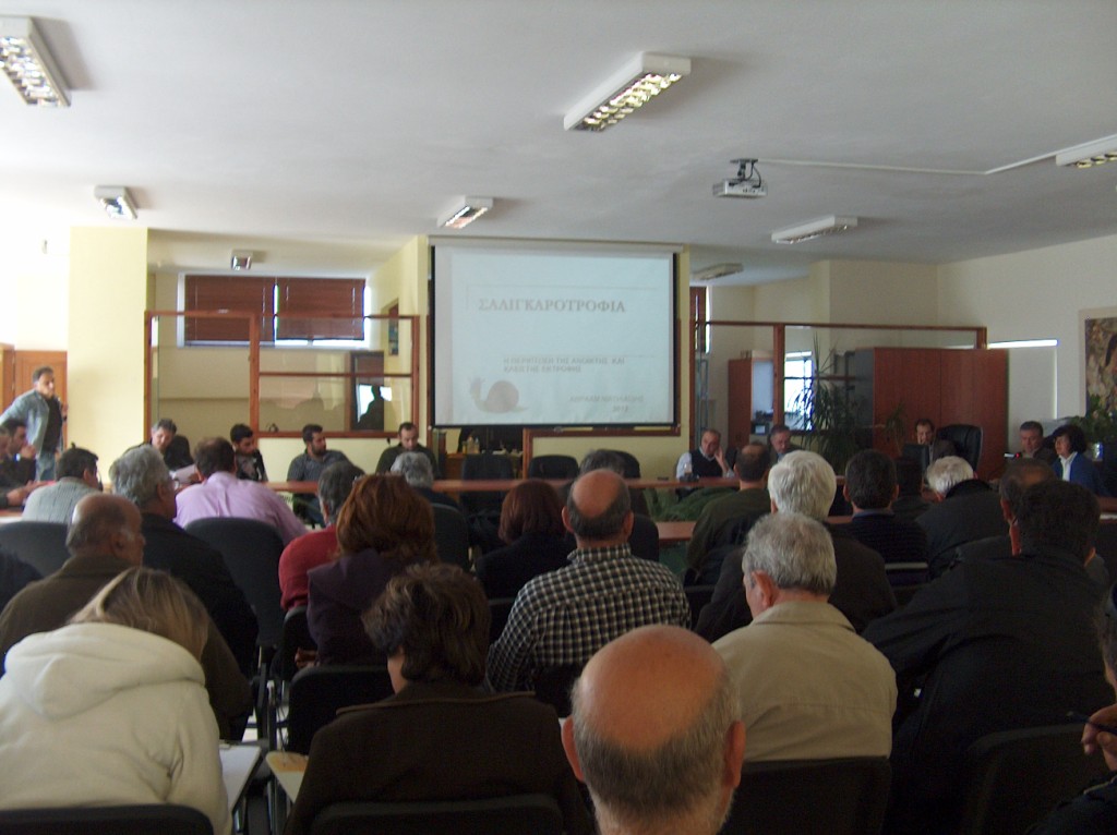 Η ενημέρωση έγινε από εξειδικευμένους επιστήμονες του Ελληνικού Κέντρου Σαλιγκαροτροφίας οι οποίοι ανέπτυξαν το θέμα οργάνωσης μιας μονάδας εκτροφής σαλιγκαριών, τις προϋποθέσεις κατασκευής μιας μονάδας, παρέχοντας όλες εκείνες τις χρήσιμες πληροφορίες που μπορούν να αξιοποιήσουν οι ενδιαφερόμενοι που επιθυμούν να ασχοληθούν με την δημιουργία μιας μονάδας εκτροφής σαλιγκαριού, ενός θετικού διατροφικού παράγοντα της μεσογειακής κρητικής δίαιτας.